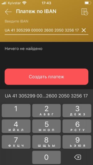 Выберите платеж по IBAN